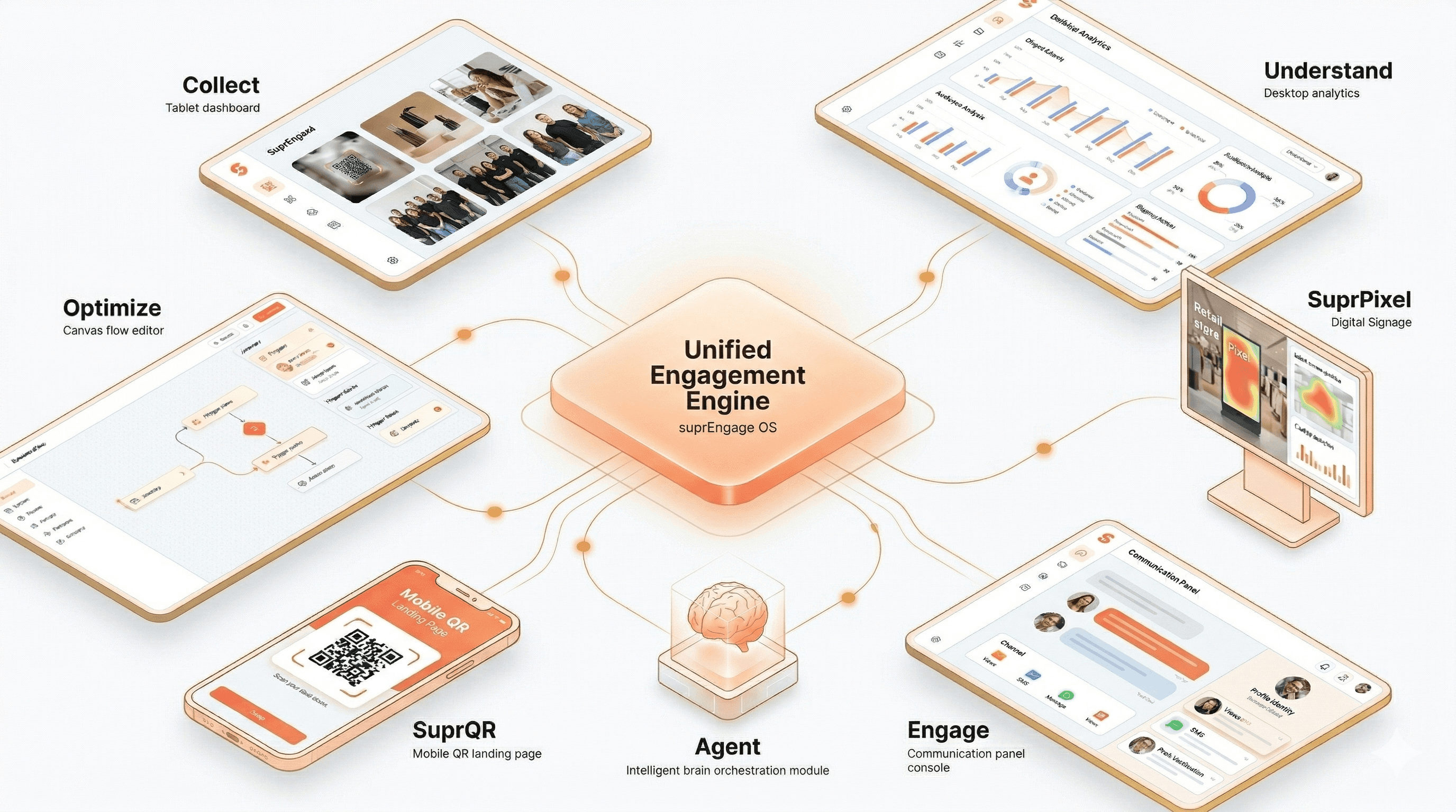 SuprEngage is the only platform that captures phygital customer behavior — from store floors and packaging to apps and web — and gives you an autonomous AI Marketing Agent that turns that intelligence into campaigns, journeys, and revenue.