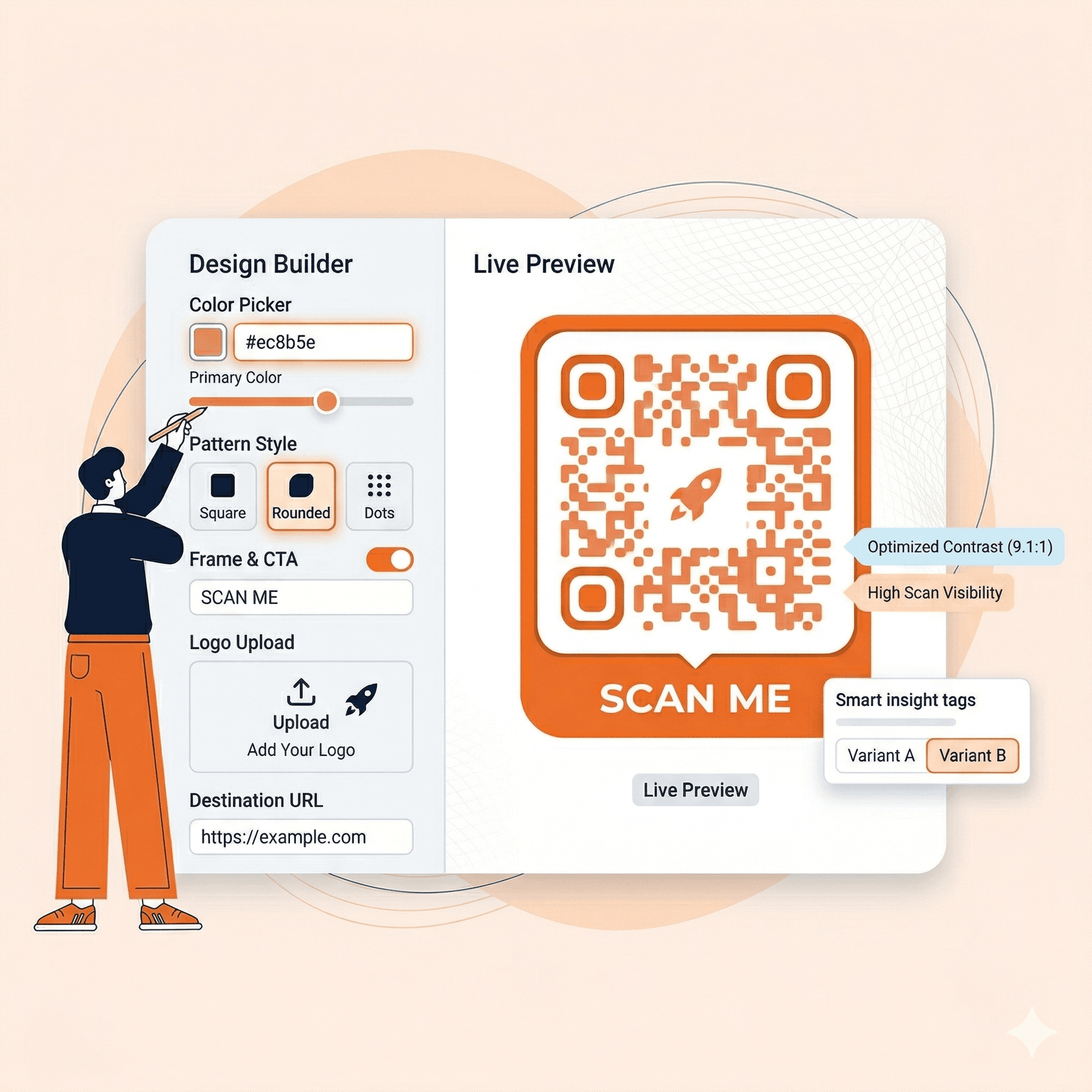 Update QR destinations without reprinting. Show different experiences to different users from the same code — based on who they are, where they are, and when they scan.